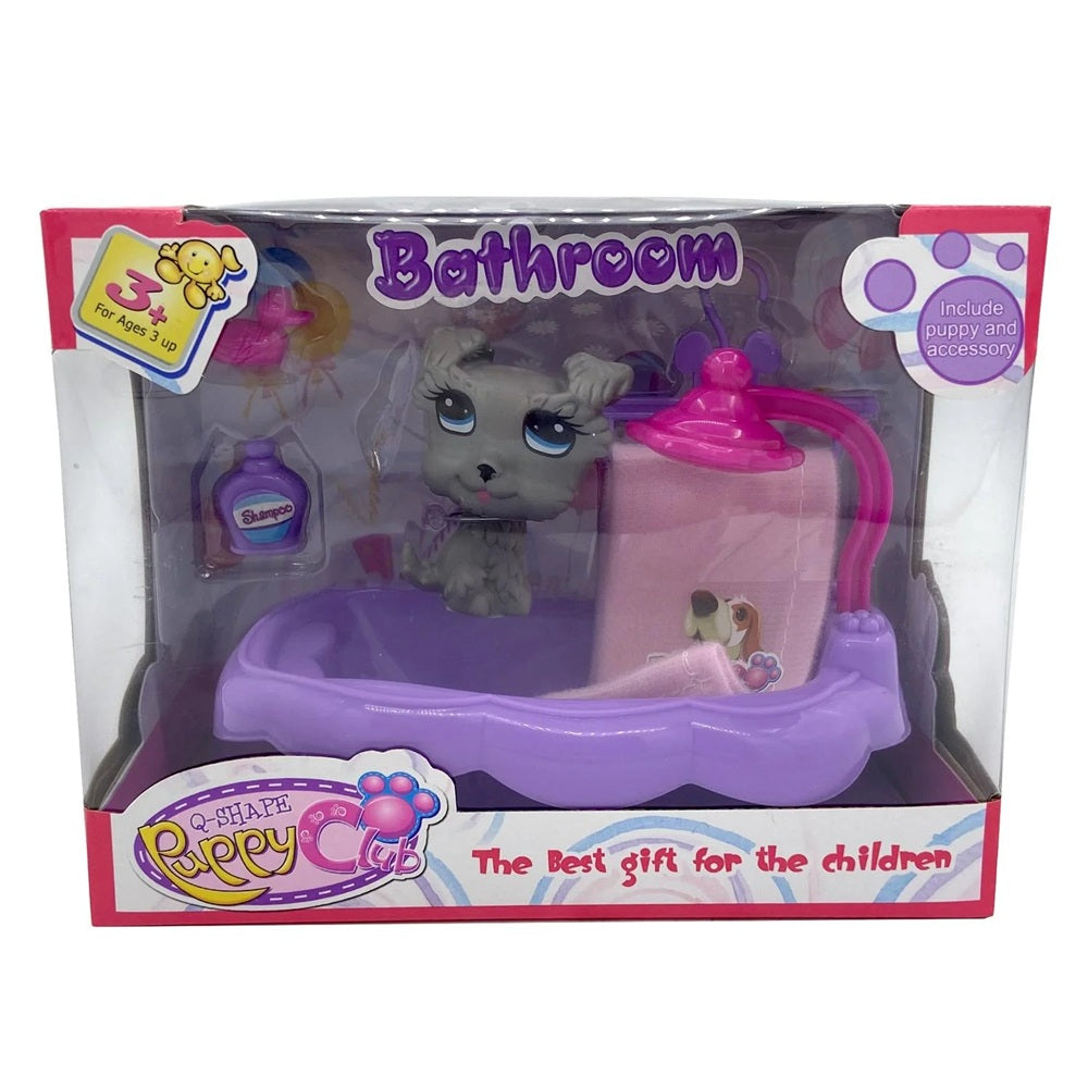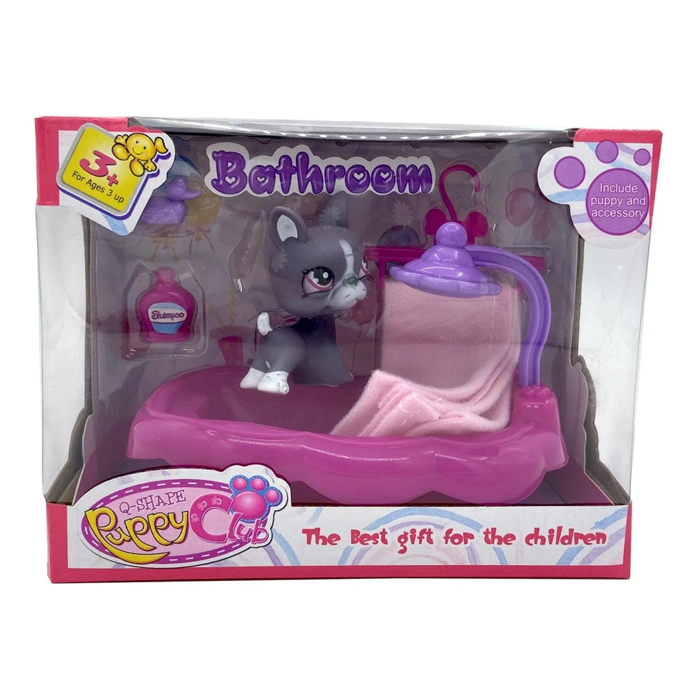 - Incluye: 1 mascota, 1 bañera, 1 shampoo, 1 perchero, 1 toalla y 1 pato de juego.