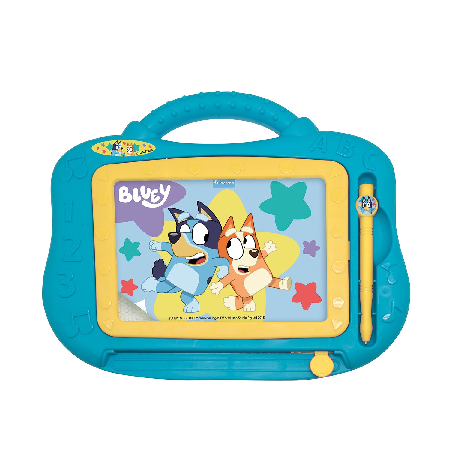 ¡La diversión de Bluey llega a tus manos! Con esta pizarra mágica, los más pequeños podrán dibujar y escribir las aventuras más divertidas junto a sus personajes favoritos.