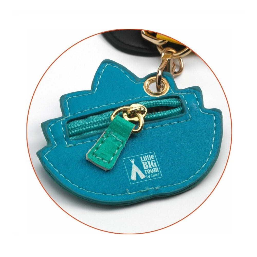 Djeco nos trae esta linda cartera con diseño de guepardo. Además trae un pequeño monedero con forma de flor de loto de lindos colores. Su correa ajustable permite adaptar su largo y así colgarla en tu hombro sin problemas.