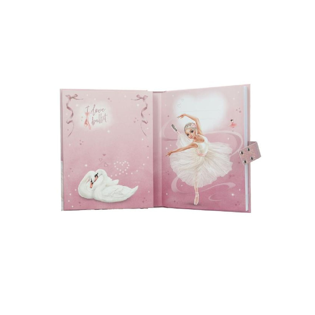 Preciosa y súper segura: La agenda rosa de Top Model, con un gran motivo de ballet, se abre solo al introducir el código correcto (personalizable). La canción "Sinfonía" suena durante unos 20 segundos. Cuenta con 80 páginas con líneas finas e ilustraciones a todo color.