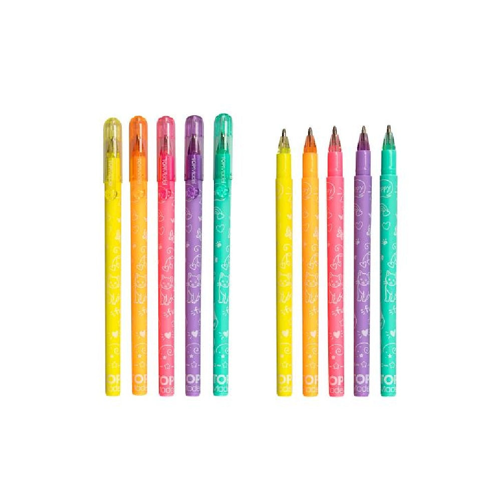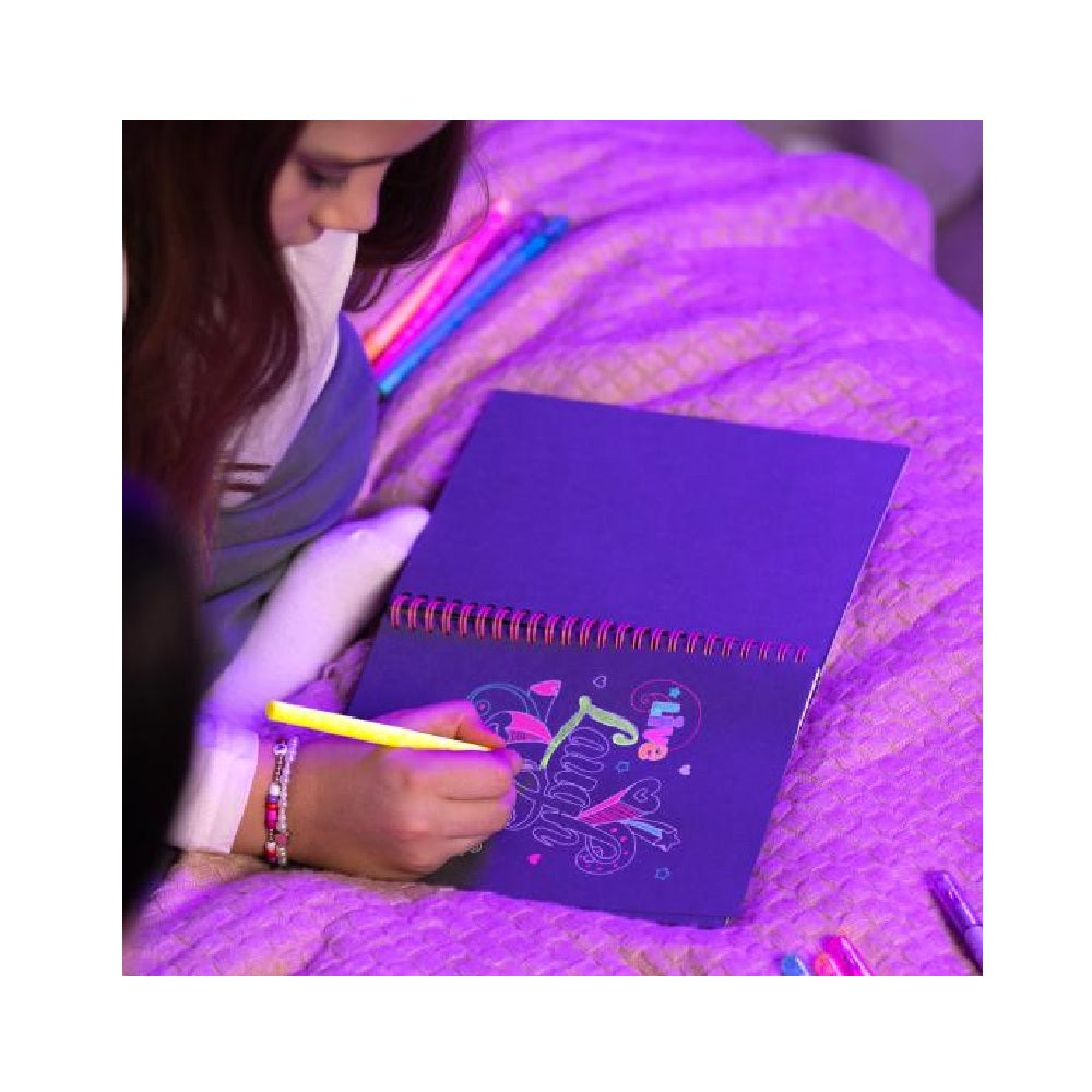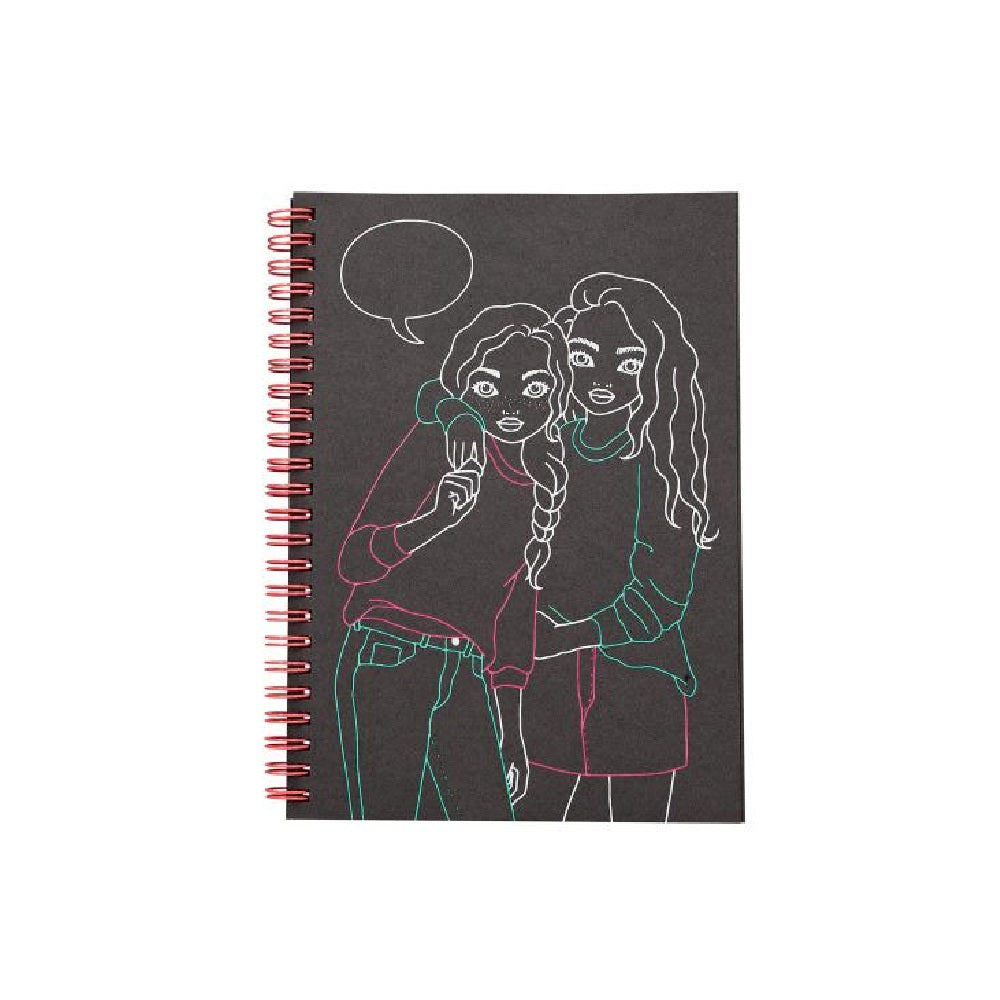 Diversión dibujando con un look neón: El libro para colorear Top Model cuenta con 70 páginas grises y blancas, algunas con contornos de motivos de colores vibrantes. Incluye cinco bolígrafos de gel neón (rosa, morado, naranja, amarillo y turquesa) y una hoja de pegatinas para decorar y dar rienda suelta a la creatividad. Cuenta con una práctica encuadernación en espiral y una goma elástica rosa ancha que sujeta los bolígrafos en un bolsillo de malla.